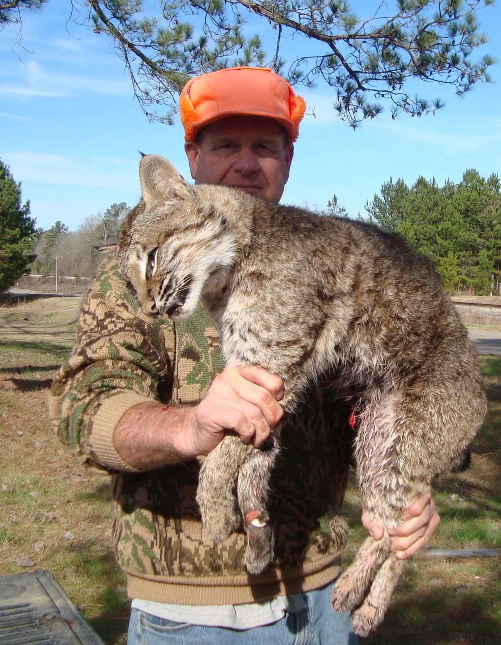 Richard Hicks came close to realizing that getting into a fight with a bobcat is like grabbing a running chainsaw. First the cat made the mistake of chasing a rabbit past Hicks. After the shot, Richard went to collect his prize when the feline surprised him by jumping up and, lucky for the shooter, took off in another direction. As you can see, it didn't get far!